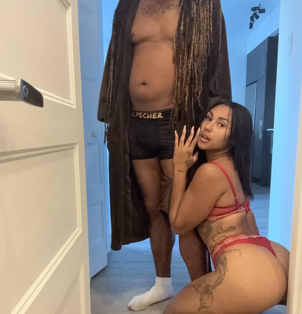 <p><img class="emojione" alt="👑" title=":crown:" src="https://cdn.jsdelivr.net/emojione/assets/4.0/png/32/1f451.png" width="32" height="32"> Lui : barbadien, 6 pieds ( Jeffrey ), 180 lbs, cheveux longs, regard brun envoûtant.</p><p><img class="emojione" alt="🔥" title=":fire:" src="https://cdn.jsdelivr.net/emojione/assets/4.0/png/32/1f525.png" width="32" height="32"> Elle : italienne, 5’7, 150lbs, poitrine 36B bien ferme, yeux brun perçants, tatouée (Naomie)… un vrai petit feu ardent.</p>